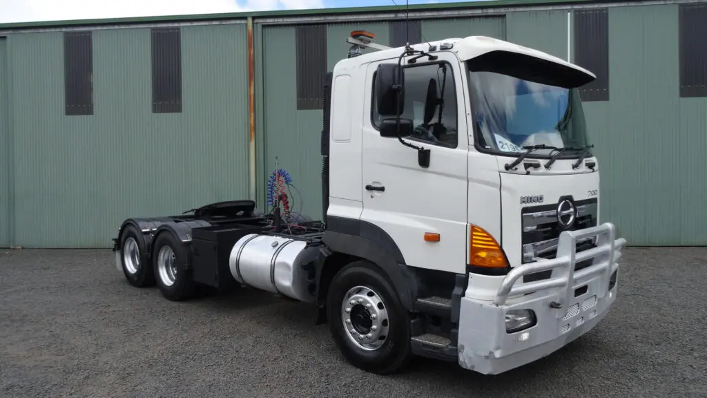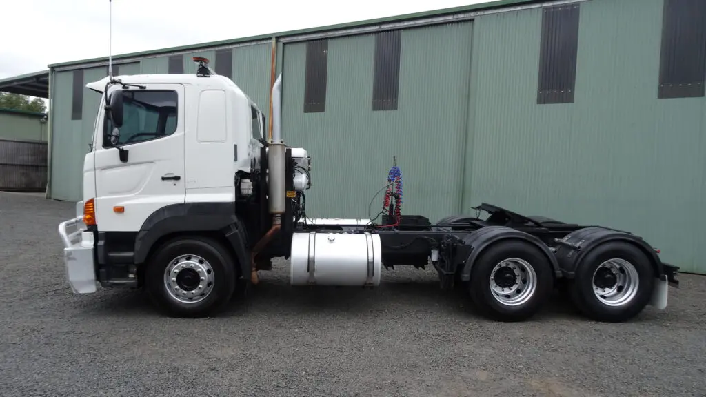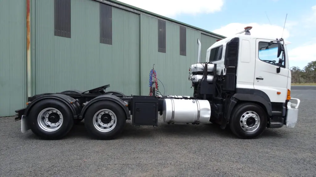 HINO FS1E 6X4 PRIME MOVER, YEAR – 09/2006, 601900 KMS, 450 HP TURBO INTERCOOLED, 18 SPEED MANUAL ROAD RANGER, 28300 GVM, 62500 GCM, 4600MM WHEELBASE, 4750MM OF CHASSIS BEHIND THE CAB, 2X FUEL TANKS, CROSS LOCKS, DIFF LOCK, ALLOY BULLBAR, AIRBAG SUSPENSION, S/N- 2195, PRICE – $49900.00 INC GST. LOCATED IN ARMIDALE NSW