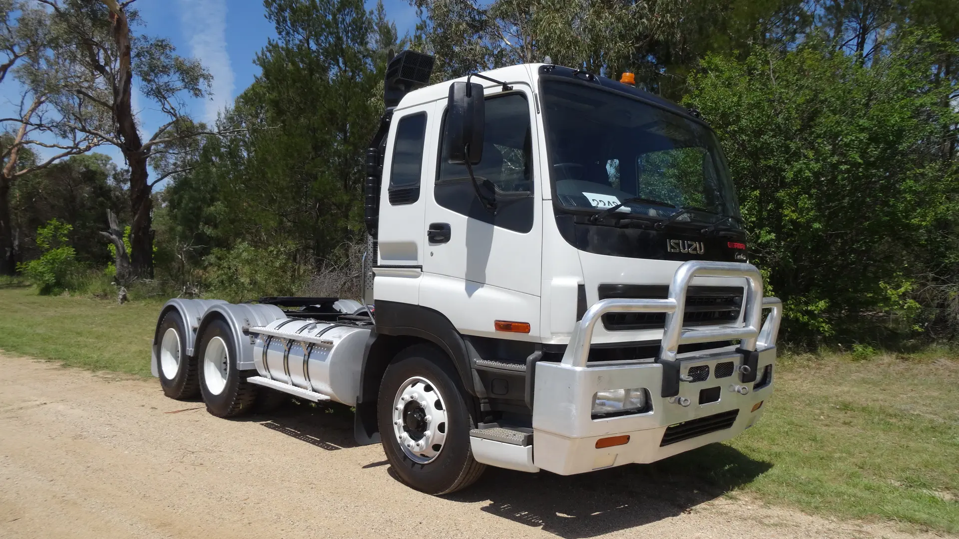 ISUZU GIGA EXY 6X4 PRIME MOVER, YEAR – 04/2007, 630900KMS, 455 HP TURBO INTERCOOLED, 18 SPEED MANUAL, 24000 GVM, 68000 GCM, 3850MM WHEELBASE, 4250MM OF CHASSIS BEHIND THE CAB, 6X4, AIRBAG SUSPENSION, CROSS LOCKS, ALL NEW TIRES FITTED, VERY TIDY TRUCK FOR AGE, CRUISE CONTROL, S/N – 2248, PRICE – $55,000.00 INC GST, LOCATED IN ARMIDALE NSW