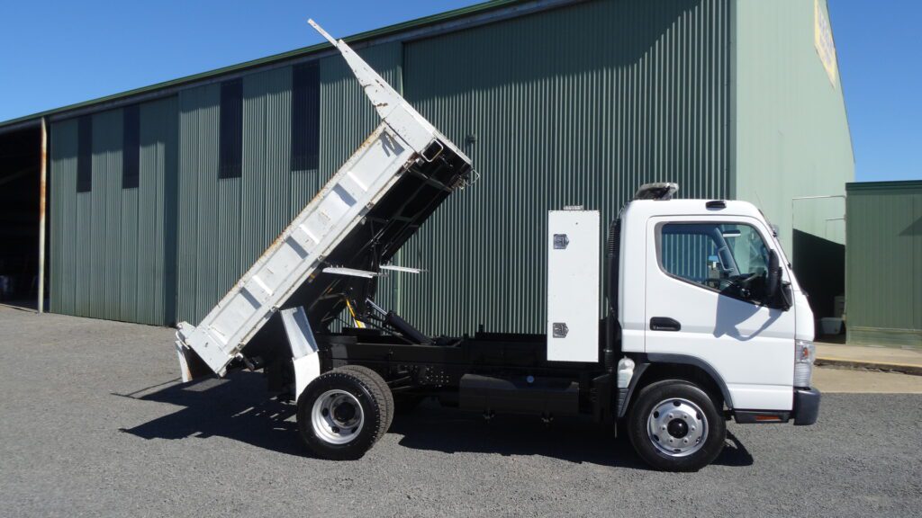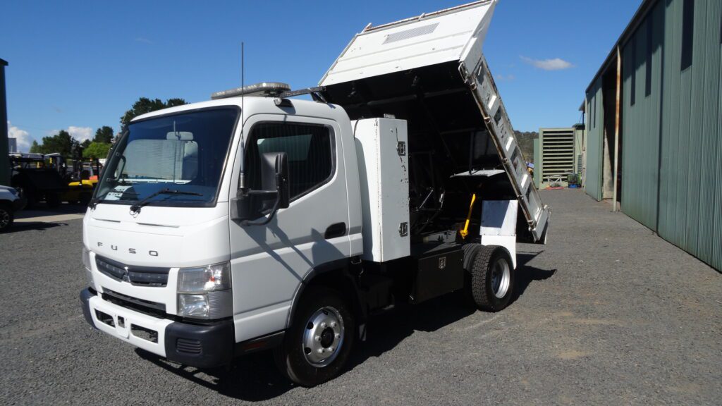 MITSUBISHI CANTER 7/800, YEAR-12/2013, 249300 KMS, 245 HP, 5 SPEED MANUAL, 6500 GVM,10000 GCM, 2820MM WHEELBASE, 2850MM L X 2065MM W X 365MM H, FACTORY TIPPER WI8TH DROP SIDES + A TOOLBOX UP THE FRONT, ELECTRIC TRAILER BRAKES FITTED, PINDLE HOOK TYPE 50MM BOLT, SPRING SUSPENSION, S/N- 2190, PRICE – $35000 .00 INC GST, LOCATED IN NSW