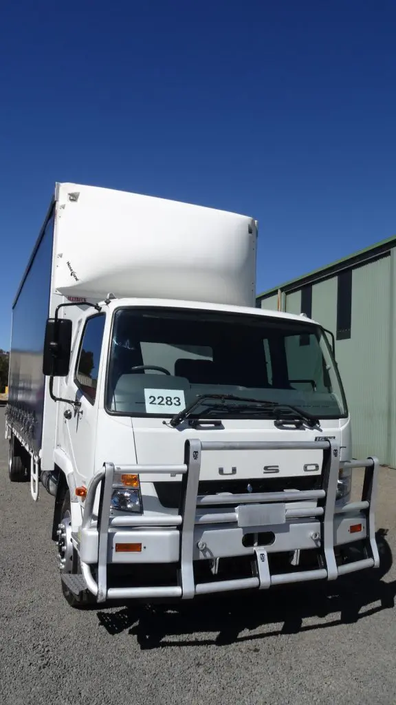 MITSUBISHI FUSO FIGHTER 10 1627 12 PALLET CURTAINSIDER, YEAR- 1/2017, 494700 KMS, 11730 HRS, 270 HP TURBO INTERCOOLED, 9 SPEED SCYNRO EATON MANUAL, AIR BAG REAR SUSPENSION, 6.5M LONG WHEEL BASE, 16000 GVM, 32000 GCM, 7.84M LONG X 2.4M WIDE X 2.75M HIGH(ALL INSIDE MEASUREMENTS)CURTAINSIDER WITH HANGING STEEL GATES, 1.0T TAILGATE LOADER, NEW REAR BACK DOORS, RUNNING 275/70 R22.5 CLEANSKIN TYRES ON 10 STUD STEEL RIMS, LOCATED AT ARMIDALE NSW, S/N-2283. PRICE $89900.00 INC GST.