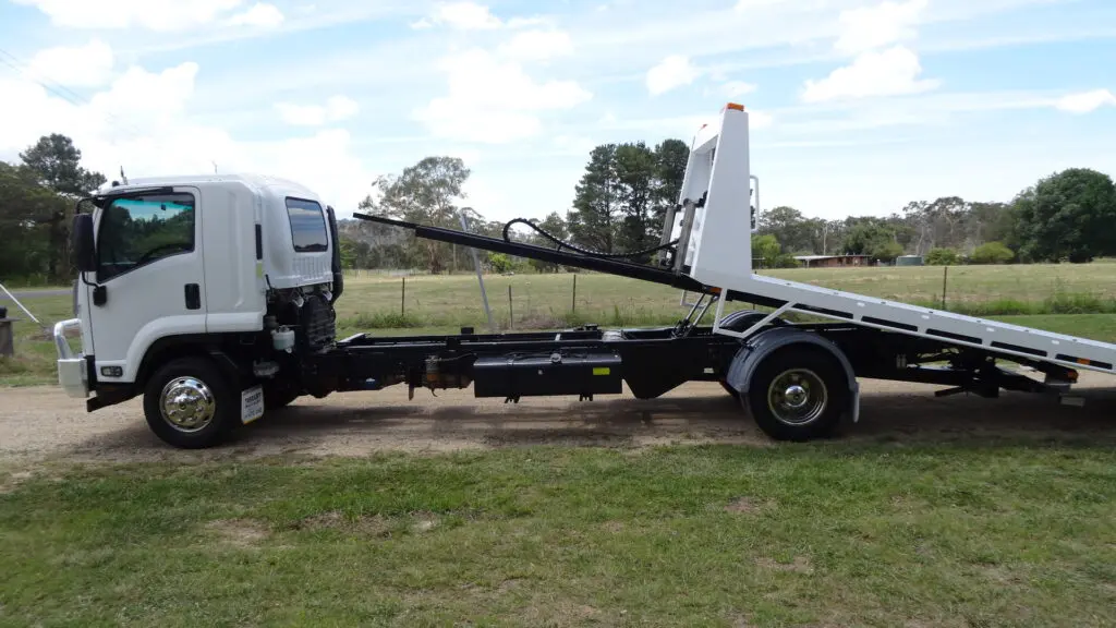 ISUZU FSD 700 TILTSILDE TRAY, YEAR – 1/2018, 497500 KMS, 255 HP TURBO INTERCOOLED, 6 SPEED MANUAL, 12000 GVM, 20000 GCM, 5550MM WHEELBASE, 6740MM L X 2470MM W, EKEBOL BODY FITTED, REAR UNDER BODY LIFT + CONTAINER PINS, LED LIGHTS FITTED, ALLOY BULLBAR, 4X2, AIRBAG SUSPENSION, S/N – 2276, PRICE- $129,000.00 INC GST, LOCATED IN ARMIDALE NSW